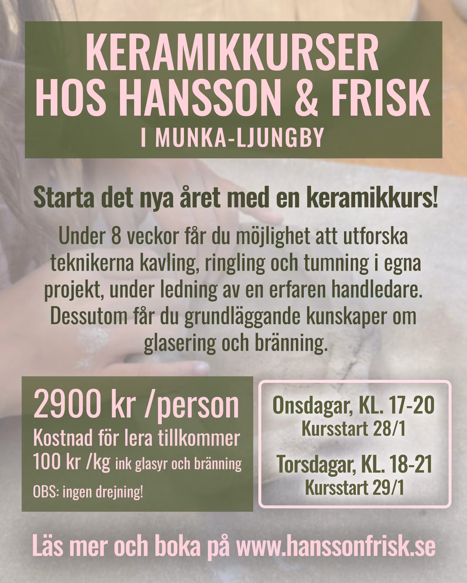 8 veckors kurs i keramik hos Hansson & Frisk TORSDAGAR kl. 18-21